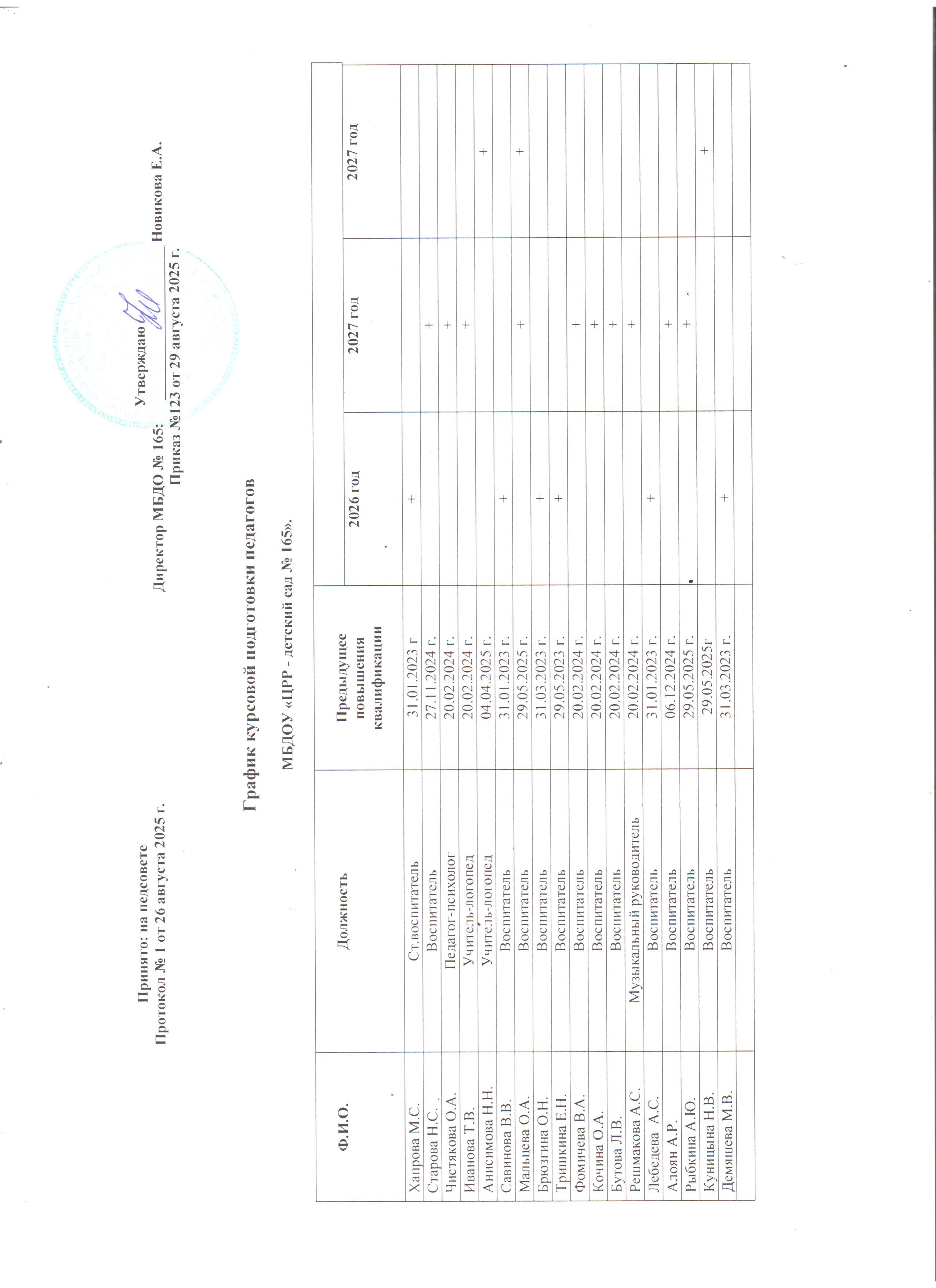 График прохождения курсов повышения квалификации и профессиональной переподготовки педагогических работников МБДОУ «Центр развития ребенка – детский сад № 165» на 2025-2026 год